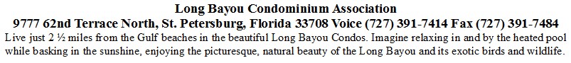 Long Bayou Condominium Association, Inc. Disaster Plan
